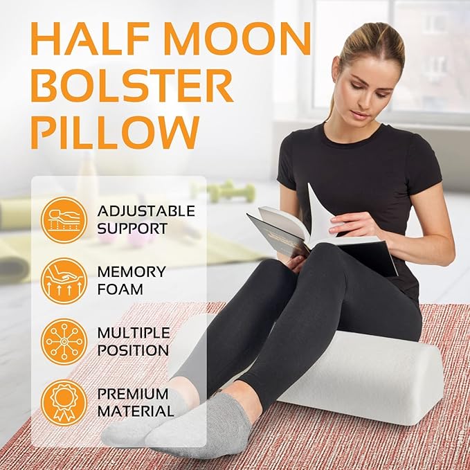 - ULTIMATE BODY COMFORT & SUPPORT- Sleep through the night with the best comfort & support your body needs. This half-moon bolster provides elevation for your head, feet, lower back, knees, hips, and legs. Place the half-moon pillow where comfort is desired to help relieve pain.