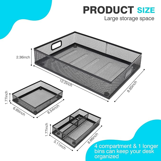Office Drawer Organizer 3 Pack, Office Supplies Desk, Black Mesh Drawer Organizer Hold Pens & A4 Sized File, 12 x 9 Inches Visit the Store