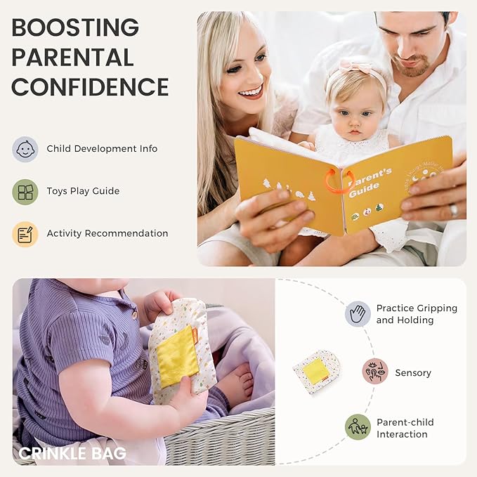 - Expert Guidance: Accompanying our toy set is a Montessori-inspired parenting guide, developed in collaboration with child development experts. This invaluable resource offers tips, activities, and insights to support parents in fostering their baby's growth and development during this crucial stage.