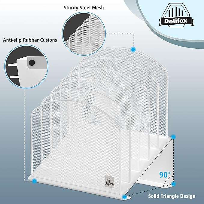 - ▶ SUFFICIENT SPACE FOR STORAGE. Delifox 5-compartment desktop file organizer is large enough to hold and classify many document or papers so as to eliminate worry of document run-off and keep track of files, folders, and other important papers