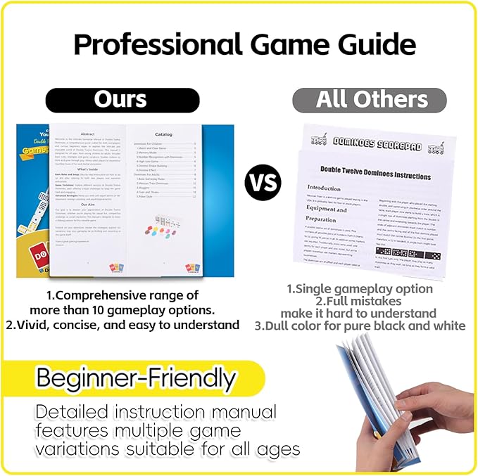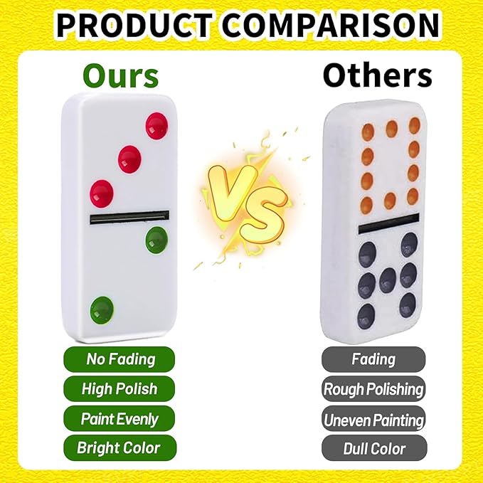 - *DELICATE &DURABLE TILES: Our domino tiles are well made with nice workmanship and the dots are clear and easy to read. Besides,the domino tiles are made from durable and safe materials that are high in hardness and not easy to wear out. Tiles are specially designed as arc angles instead of sharp corners to protect people from being scratched.