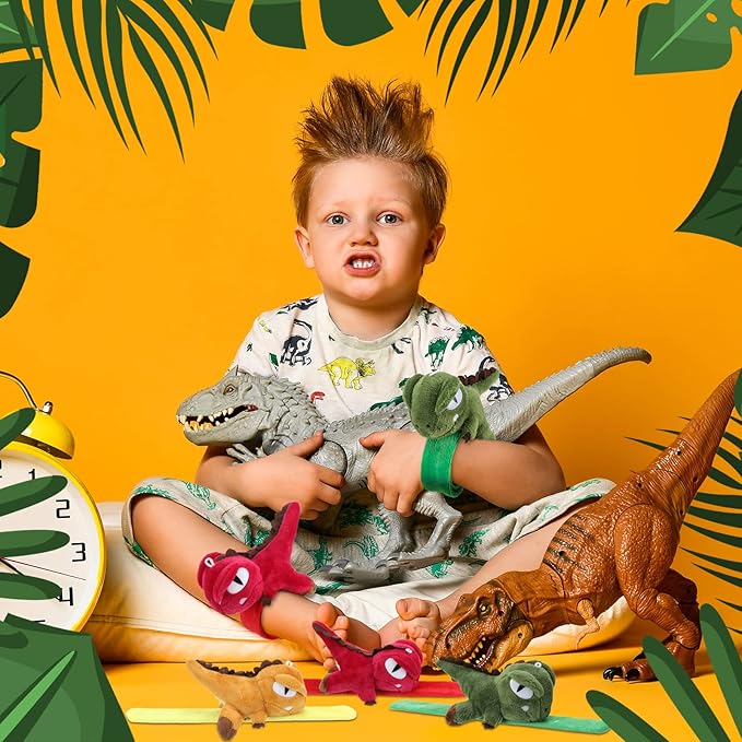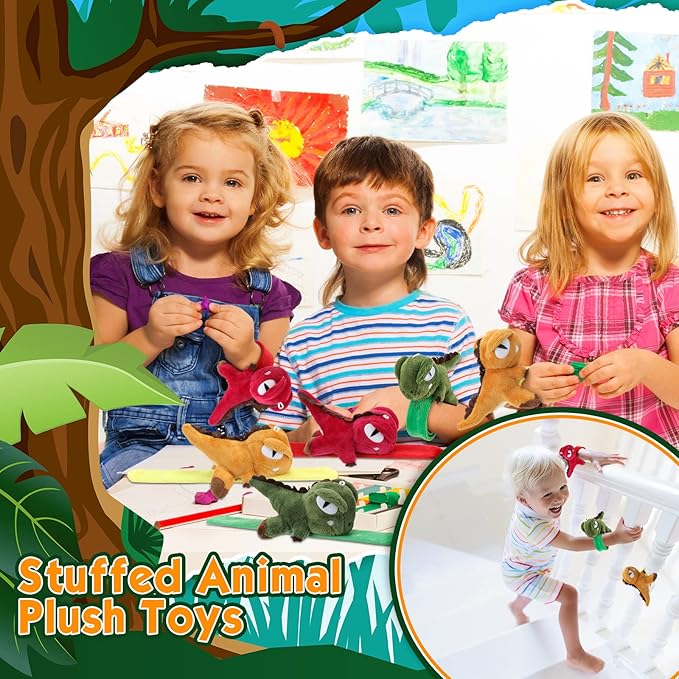 Leyndo Animal Slap Bracelets Stuffed Animal, Stuffed Animal Plush Slap Bracelets Bulk Kids Toys, 8 Inches (Dinosaur,6 Pcs)
