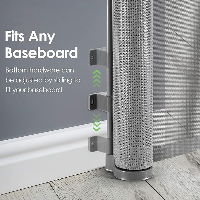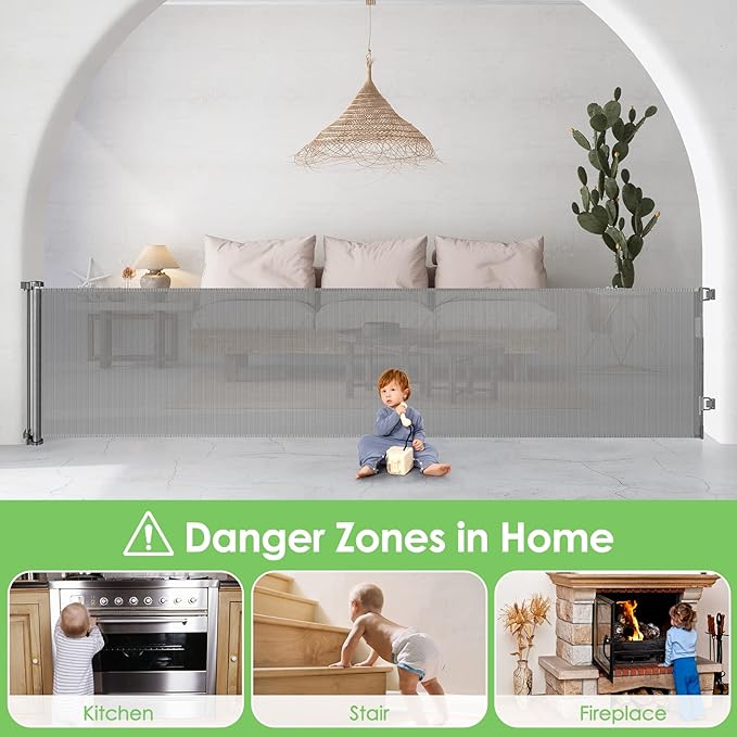 - MULTI-FUNCTIONAL: Kids and dogs are curious about everything in the house, like stairs, kitchen, living room, hallways, doorways, garage, indoor and outdoor, etc. So you need a retractable baby gate or retractable dog gate to block off dangerous areas or divide your home.