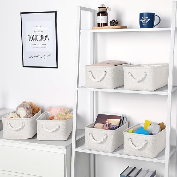 Bidtakay Small Storage Baskets for Shelves Set of 6 Biege Fabric Storage Bins for Organizing Linen Collapsible Organizer for Closet Nursery Clothes Toys 11.8 X 7.8 X 5 Inches