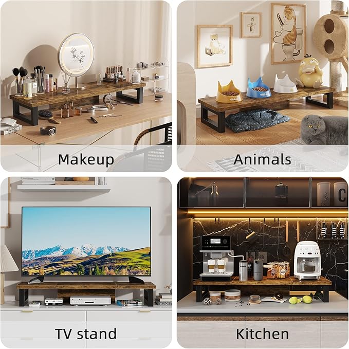 - 【Multifunctional Monitor Riser 】The monitor stand has powerful storage function of keeping the table clean.It can be used as a monitor stand riser, printer stand, laptop riser, or a TV stand, makeup, animals. Extra storage space underneath organize your office supplies.
