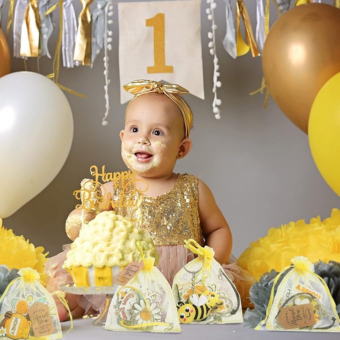 - Bee Party Gift Set: you will receive 20 pieces of bee keychains, 20 pieces of bee bracelets, 20 pieces of thank you kraft tags, 50 pieces of bee stickers, 20 pieces of organza bags, abundant in quantity, meeting your different decorative needs, enough to share with your friends