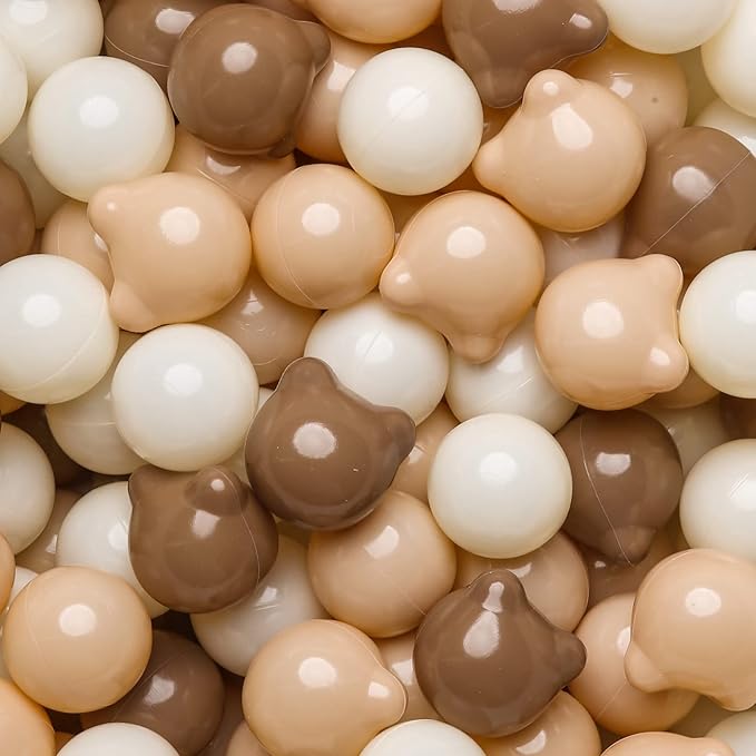 - PACKAGING & VERSATILITY - Each package contains 100 pieces, available in bear-shaped and round designs. Ideal for filling play tents, playpens, kiddie pools, baby playhouses, play yards, ball pits, and bounce houses. They also serve as excellent photo props for pets and can be used at parties, backyards, parks, playgrounds, daycare centers, schools, and carnivals.