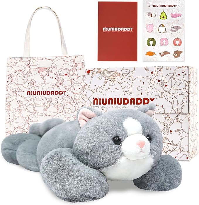 - 【Gray Cat Pillow for Everyone at Anywhere】Cat toy fluffy fur makes children or adults feel happy when play or hug with weighted plushie. The NiuniuDaddy weighted stuffed kitty plush is perfect for home, school, kindergarten, daycare, in the car or as an interior decoration for kids & adults