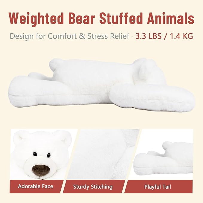 - 【Unique Original Design from Niuniu Daddy】Our designer designed the Weighted Stuffed Animal based on Polar Bear. White Bear Toy fluffy fur makes children or adults feel happy when play or hug with Weighted Bear Plush. This Cute Bear Stuffed Animals is a great gift for anyone in your life who loves Weighted Stuffed Bear or who feels stress easily and it will surely bring a smile to anyone