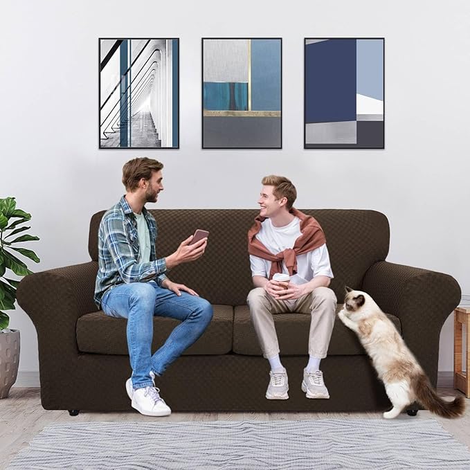 MAXIJIN 3 Piece Stretch Couch Covers for 2 Cushion Couch Sofa Slipcovers with 2 Extra Large Seat Cushion Couch Jacquard Loveseat Sofa Couch Cover for Dogs (2 Cushion Sofa, Dark Coffee)