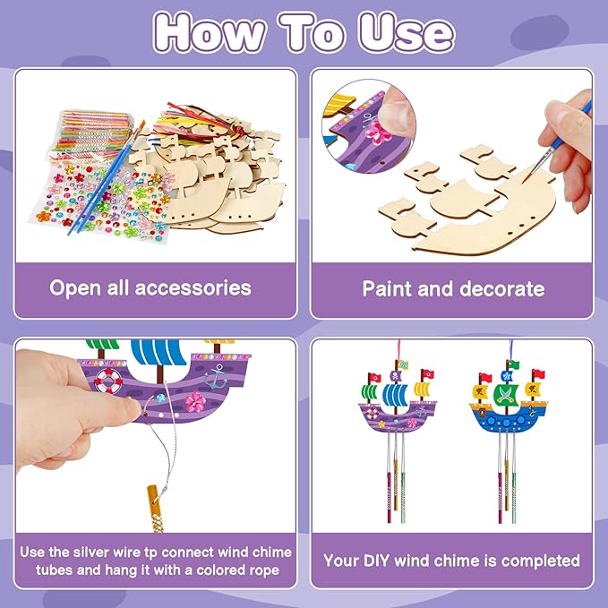 - Great Ideas For Craft Lovers Gifts:DIY wooden pirates ship wind chimes is a great gift idea for summer parties, spring parties, Fall parties ,Easter, Mother's Day, Children's Day, Christmas or other holidays.it is also a good pirates ship theme craft Kits for Kids boys girls.And widely used for decoration of homes, gardens, windows, doors, classrooms, etc.