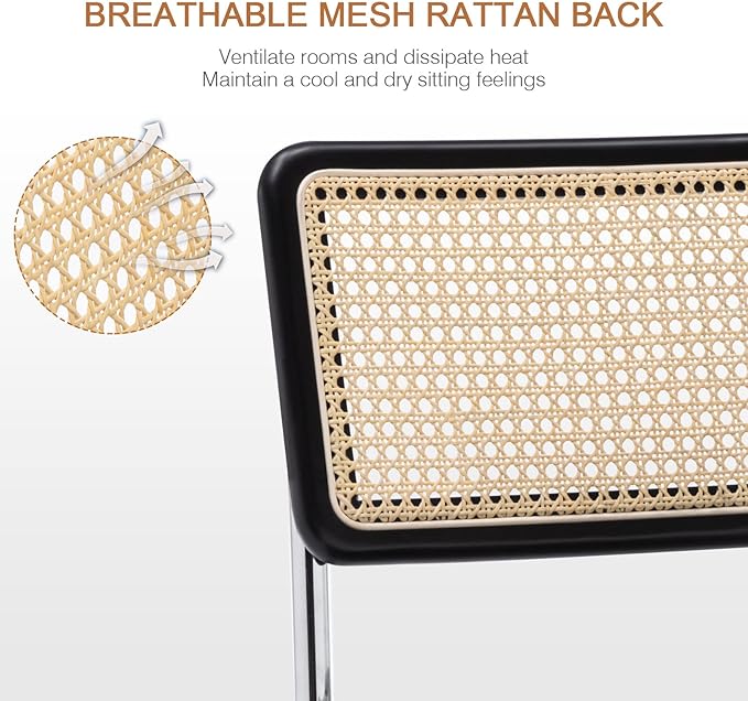 - Material: Stained rattan in a red oak tone is artfully hand-woven to create this graceful backrest. It’s eye-catching to pair high glossiness and plumpness faux leather seat filled with high-density sponge, having the advantages of permeability and comfort. What anyone has to admit is that we ultimately impress you with its details and this distinctive home office chair is nearly perfect.