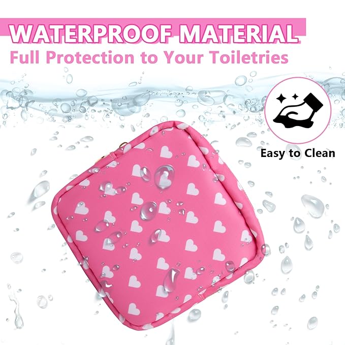 - 【Multiple Options】The waterproof makeup bag has four sizes, Mini(4.75''*2''*5''), Small(9.5''*2''*5''), Large(11''*5''*8'') and Slim(2.75*8''*2.75''). You can choose the right size according to the items you want to store. We have four types of patterns, Pink Heart, Houndstooth, Checkerboard grid and White Heart. You can enjoy choosing the pattern you like.