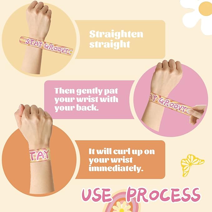 - 【Groovy Bracelet Application】: Retro hippie bracelet is suitable for groovy retro hippie birthday party, two groovy birthday party, daisy party, groovy rainbow party, groovy birthday classroom decorations, 60s , 70s, 80s, 90s groovy retro hippie theme party. They can also act as school presents, goodie bags fillers, students prizes or other daily application!