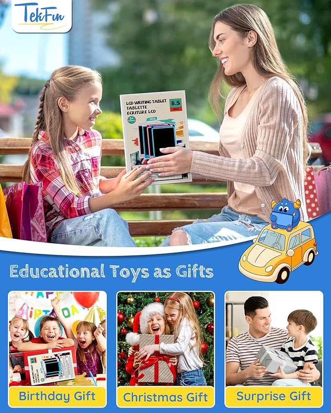- Perfect Kids Gift Choice: TEKFUN LCD writing tablet would be a perfect gift for kids on any occasion.No matter for birthdays, Christmas, Easter, Valentine's Day, back-to-school supplies, etc. Encourage kids to develop their imagination and let them draw whatever comes to their minds. A suitable gift toy for 3 4 5 6 7-year-old boys and girls. Multi-use for all age groups, even toddlers, children, teens, or adults.