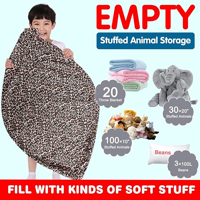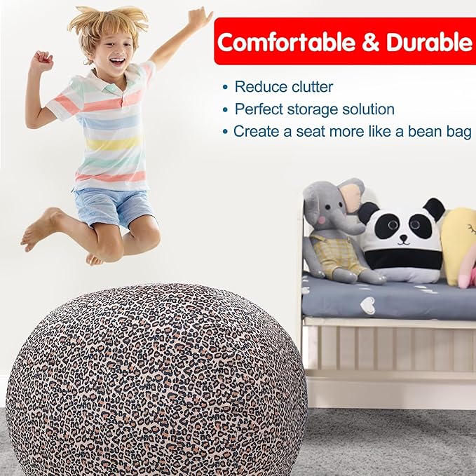 Lukeight Stuffed Animal Storage Bean Bag Chair Cover for Kids, Zipper Beanbag Chair Cover for Organizing Toddler and Kids' Rooms Plush Toys (Leopard Velvet, XX-Large)