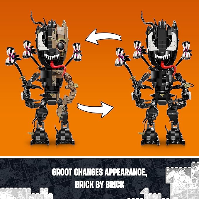 - Transformation into the Venomized Groot: LEGO Marvel Venomized Groot (76249) lets Marvel fans make the cute Groot stone by stone more and more similar to the hideous Venom