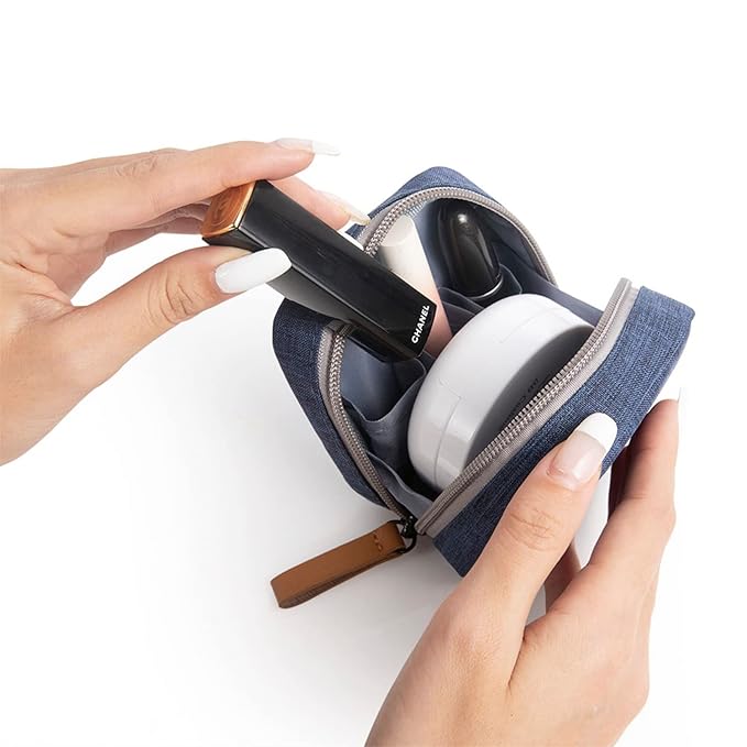 Hekyip Mini Cosmetic Bag, Travel Makeup Pouch, Portable Waterproof Cosmetic Pouch for Ladies Women, Mini (Mini Navy Blue)