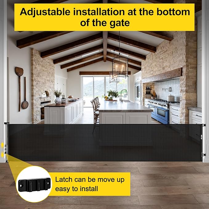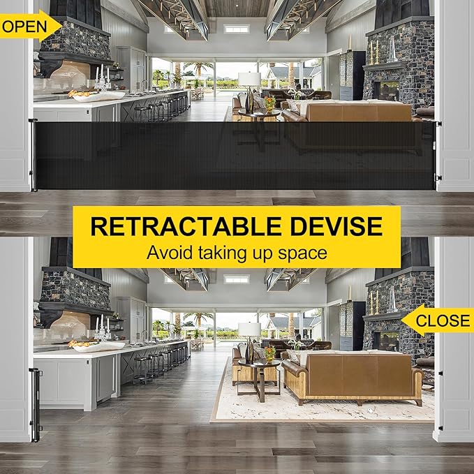 - [Baby Play Area] You can use the extra wide retractable baby gate to separate a safe play area for your baby in your home. Keep your dog out of the baby safety gate and do not disturb your baby.