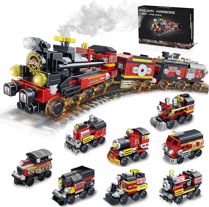Transforming Train Building Block Toys for Boys Girls Aged 6-12.Steam Train or 8 Locomotive Models or Train Warrior Robot.Wheeled Train Toys.8in2 Construction Toys.Idea Gifts for Kids(766P)