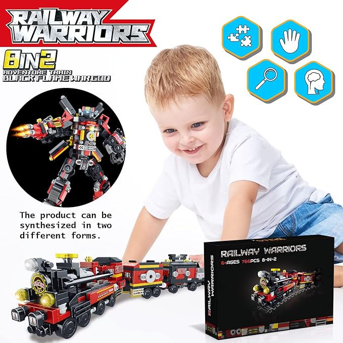 - [Ideal Gift for Kids] - This train robot building kit will be a great educational gift for kids aged 6+.They can learn about the basic train structure by building different locomotives.This is an excellent gift for their Birthday, Children's Day and Christmas.