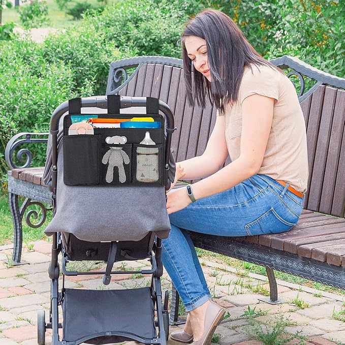 - 【High Quality Material】The stroller caddy is made of strong 420D Oxford cloth and polyester mesh , which is durable, wrinkle and tear resistant. At the same time, the surface of the bed pockets bedside storage is soft and won't scratch your items.