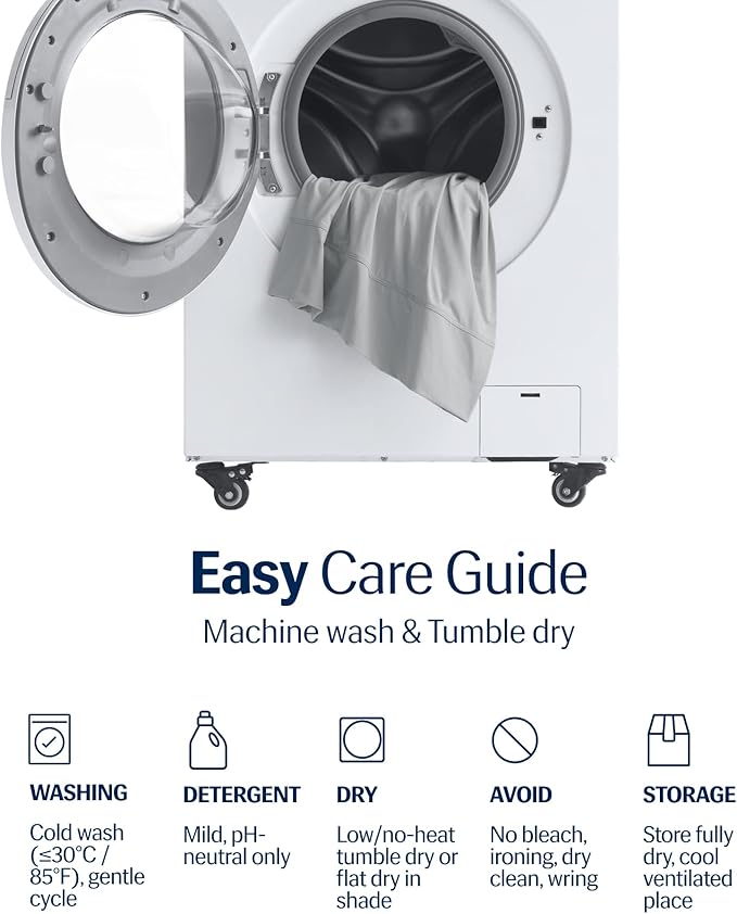 - Product Care Instructions : Washing: 1) Wash on low with a low alkaline or neutral Ph detergent. 2) Cold water and low spin. 3) Don't bleach. 4) Don't use fabric softener. Drying: 1) Tumble dry on low/no heat or line dry. 2) Don't use iron. 3) Don't dry clean. Washing: 1) Wash on low with a low alkaline or neutral Ph detergent. 2) Cold water and low spin. 3) Don't bleach. 4) Don't use fabric softener. Dryi… See more