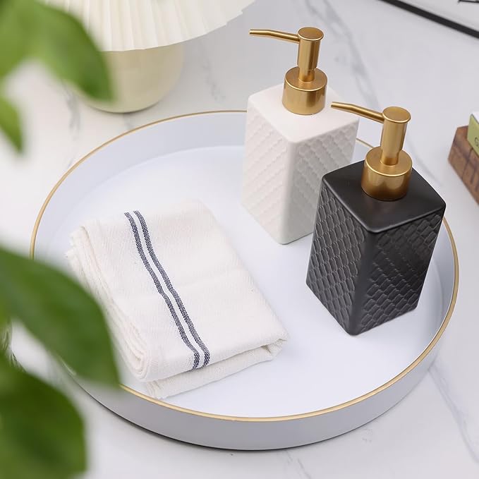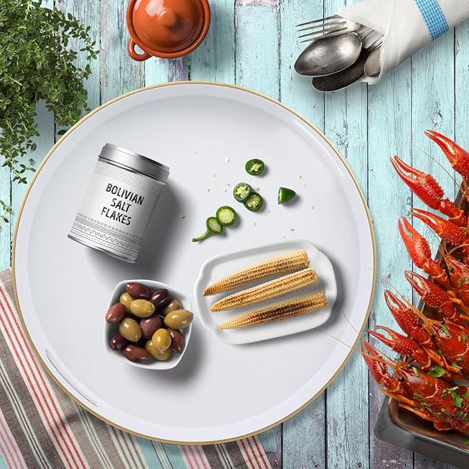 Omuriko White Round Decorative Tray with Handles, 13" Versatile Serving Tray for Coffee Table, Ottoman, Ideal for Serving, Displaying, Organizing