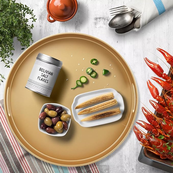 Omuriko Gold Round Decorative Tray with Handles, 13" Versatile Serving Tray for Coffee Table, Ottoman, Ideal for Serving, Displaying, Organizing