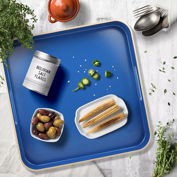 Omuriko Royal Blue Square Decorative Tray with Handles, 13"*13" Versatile Serving Tray for Coffee Table, Ottoman, Ideal for Serving, Displaying, Organizing
