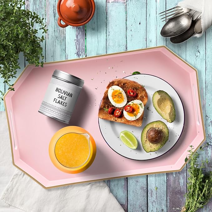 Omuriko Pink Decorative Tray with Handles, Versatile Serving Tray for Coffee Table, Ottoman, Ideal for Serving, Displaying, Organizing, 15.7"*10.2"*1.57"