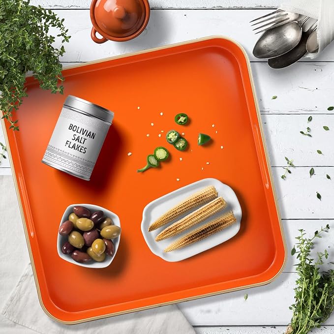 Omuriko Orange Square Decorative Tray with Handles, 13"*13" Versatile Serving Tray for Coffee Table, Ottoman, Ideal for Serving, Displaying, Organizing