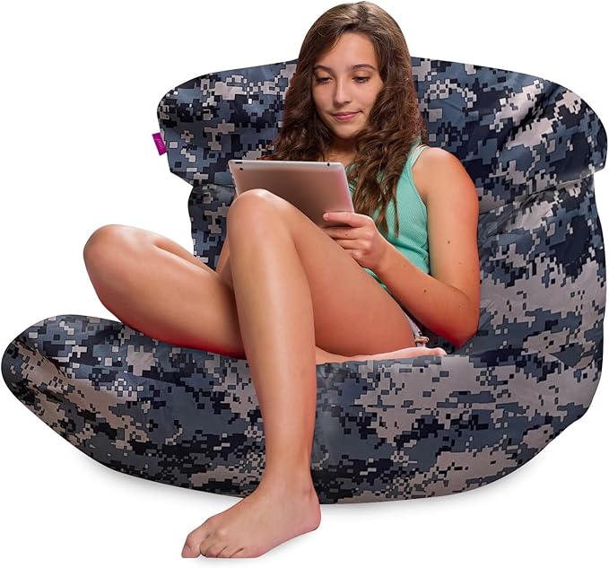 Posh Creations Structured Comfy Bean Bag Chair for Gaming, Reading and Watching TV, Laguna Lounger, Nylon - Camo Digital
