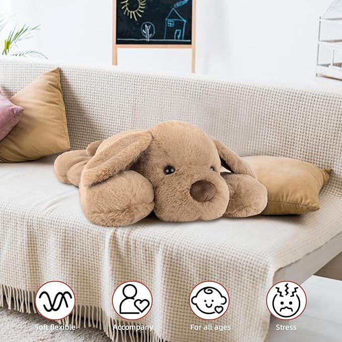 - 【Unevenly Distributed Weights】Provide the more realistic "hugging back" feeling, offers 3.3lb weight to help calm irritability. Besides, the weight added in abdomen, weighted fore legs and hind legs for the weighted stuffed animals dog as well. This weighted dog plush animal helps manage stress and its body size is great for cuddling. The cute stuffed dog pillow plush will feel heavier in your arms, providing a sense of security and offer comfort for anyone at night or in times of need
