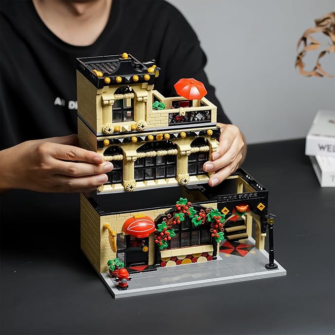 - This house building set features a city restaurant design that captures the essence of morden living. With 1489 pieces,provides a fun and challenging building experience for all ages