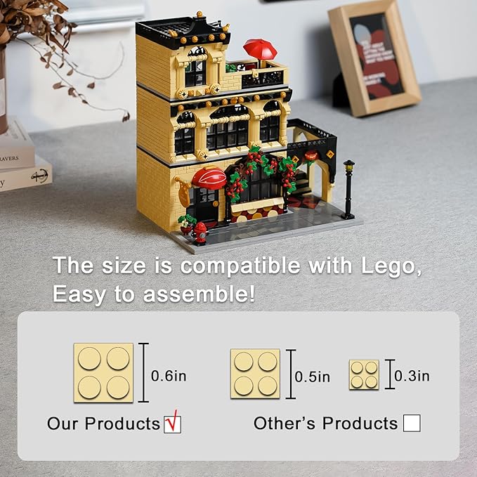 - This city restaurant building kit comes with easy reading instruction booklet and bricks in numbered.Made of the same ABS plastic as the classic brand with smooth edges.They are durable,light,safe and washable
