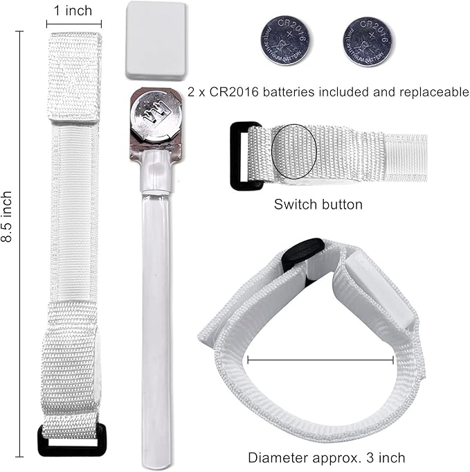 - 【Easy to use】Powered by 2 CR2016 batteries are included and installed, so you can start using it right away. The battery is also replaceable, so you can easily swap it out when it runs out of power. Additionally, if the nylon bracelet gets dirty, you can remove the battery pack and wash the bracelet, making it reusable.