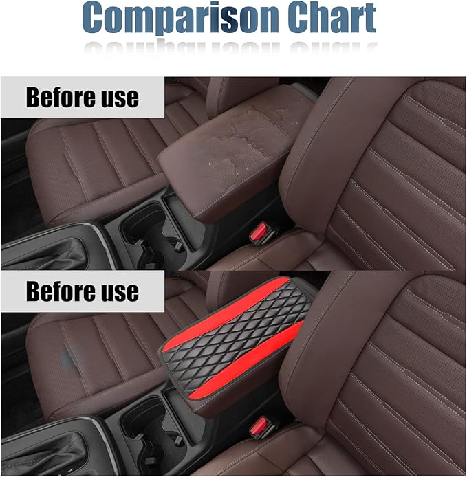 Car Center Console Cover, Universal Leather Waterproof Armrest Seat Box Cover Protector, Comfortable Car Decor Accessories Fit for Most Cars, Vehicles, SUVs-Red