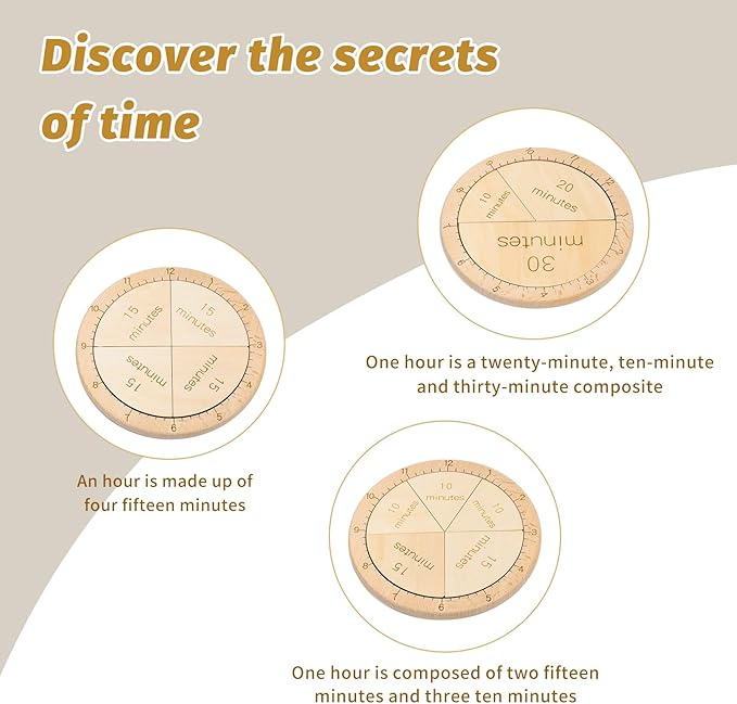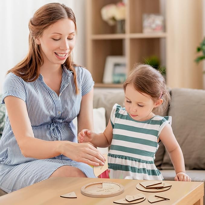 Wooden Montessori Fraction Clock Toy, Math Learning Time Teaching Materials, Set an Hour of Puzzles with Minute Tiles, Learning Clock for Kids