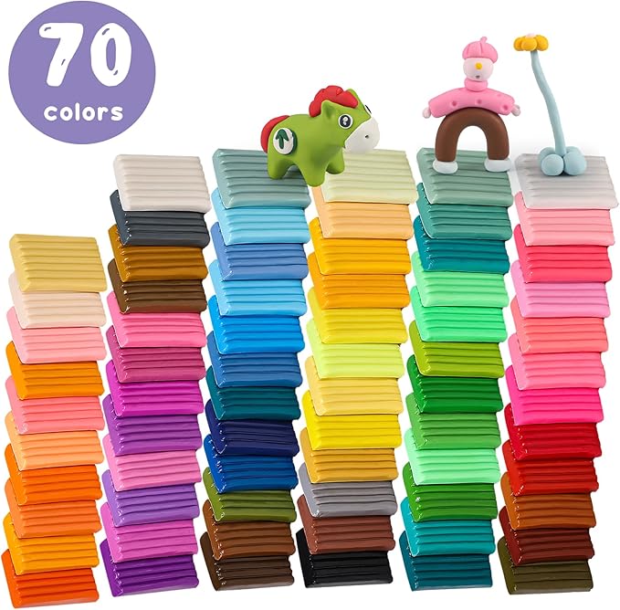 Polymer Clay 70 Colors, Modeling Clay for Kids DIY Starter Kits, Oven Bake Model Clay, Non-Toxic, Non-Sticky, Ideal Clay Kits for Children and Artists