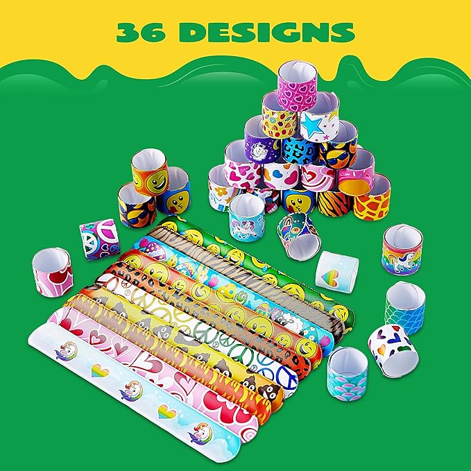 - IDEAL GIFT: These cute slap bands add style to every occasion! A nice gift to give to students or kids! A perfect choice for school parties, classroom treasure box, treat bags, birthday party, Easter egg hunt stuffers, Trunk or Treat event, school prizes, prizes for class, Halloween treat bags, birthday party, school prizes and carnival party favors. Put them in goodie/goody bags for valentine's day, Halloween and school Festivals! Keep it stylish, your kids will surely have fun
