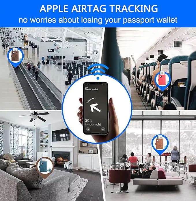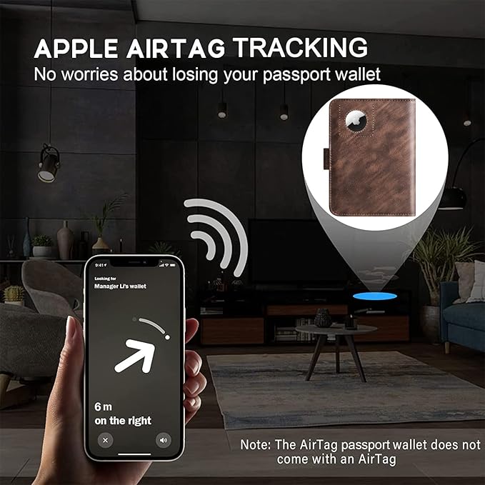 - PASSPORT AND AIRTAG HOLDER COMBO - The built-in holder for Apple Air Tag combine passport wallet and AirTag ideally to make sure you never lose your passport wallet again. Misplaced or lost your passport wallet? Keep track of and see where you last had it alongside friends and devices in the Find My app. The AirTag passport wallet does not come with an Airtag.