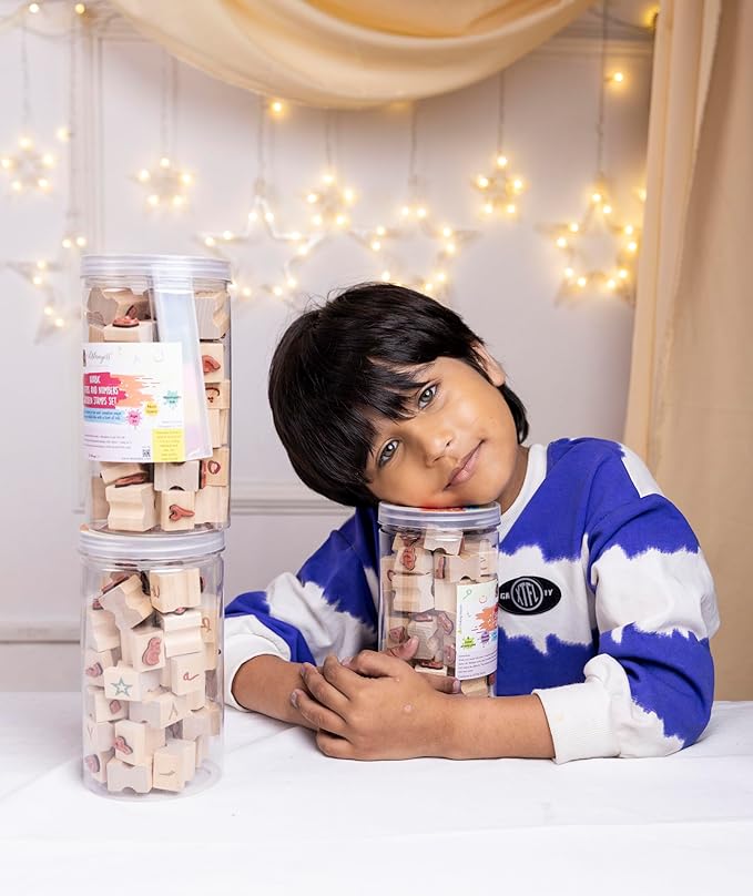 Arabic Alphabets & Number Wooden Stamps with Ink Pad in Jar– Educational Learning & Development Tool for Kids – Fun Montessori Arabic Language & Number Recognition Set for Toddlers & Preschoolers