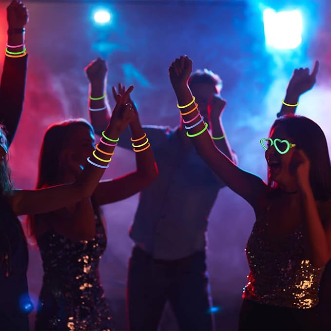 - Easy to use: Just simply snap, bend, and shake until completely lit, then enjoy you glowing party. With connectors,you can use these glow sticks to create glow bracelets,necklaces, ear rings, headbands, words and so on. Great amount of joy and fun.