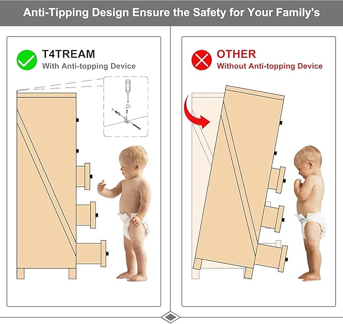- 【Sturdy & Durable】The bedroom dresser is made from FSC-Certified wood for long term use, scratch resistant. No strong odor.The widened dresser legs made the dresser does not slide easily, provide great durability and stability.