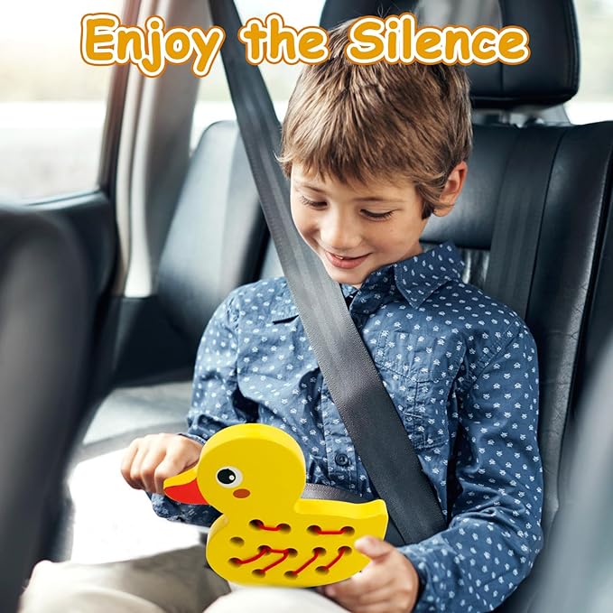 Sealive Wooden Lacing Toys for Toddlers, Educational and Learning Montessori Fine Motor Skill Toys, Perfect Toddler Travel Toys, Early Learning Development for Kids (Duck)