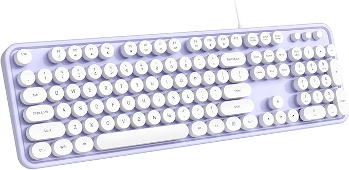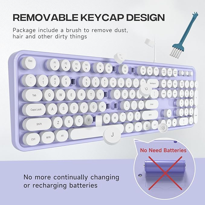 - 【Retro Typewriter Keyboard】Cute round keycaps, crisp and sweet sound, perfect knocking feel, let you find the feeling of a retro typewriter. And it’s detachable, making the keyboard easy to clean.