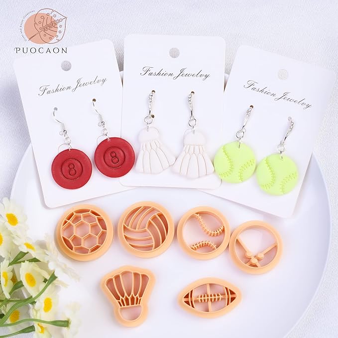 - [Easy to Use]: You will find this sports theme clay cutters set includes various ball shapes, just find or mix colored clay to match the different effects need, condition the polymer clay into a clay slab and press the clay cutters on them, it will help you making stunning effect.