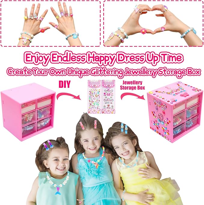 - Decorate Your Own Jewelry Organizer Toy - Create a one-of-a-kind jewelry box with sparkling gem sticker. This toddler girls toys with 2 pack glitter gemstone stickers, including butterfly designs, princess crown design, flowers designs, your lovely girls will have hundreds of sparkly stickers to bling out their jewelry box. The jewelry organizer toy has 6 easy-to-use drawers box for tidy storage, perfect toys for 3 4 5 6 7 8 year old girls to cultivating a good habit of storage after dressing up