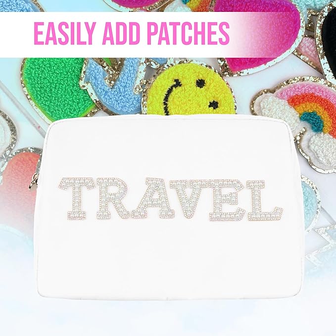 - PATCHES FRIENDLY: The nylon makeup bag material allows you to easily apply your favorite patches and fit all your travel-size toiletries.